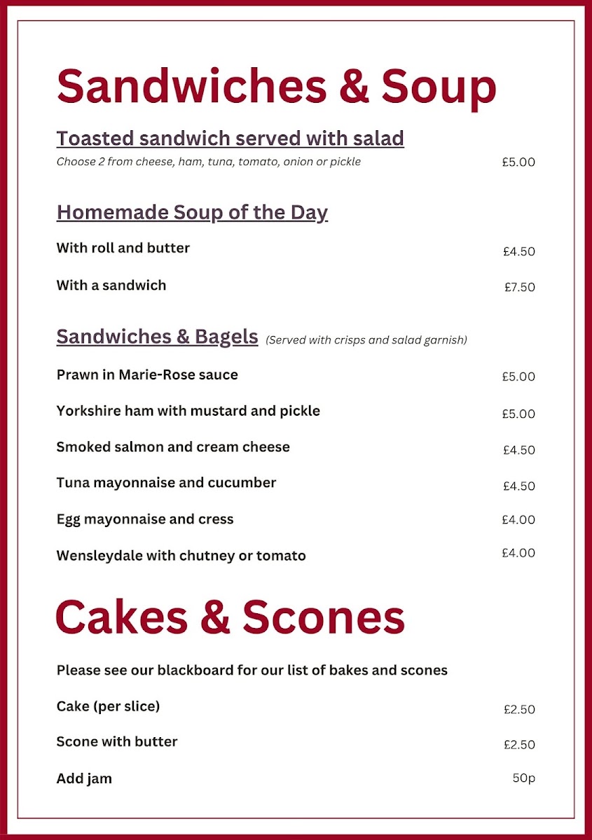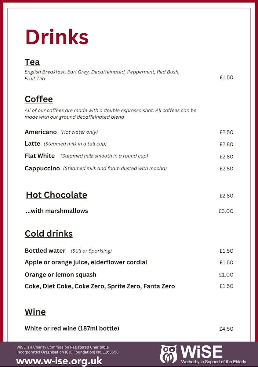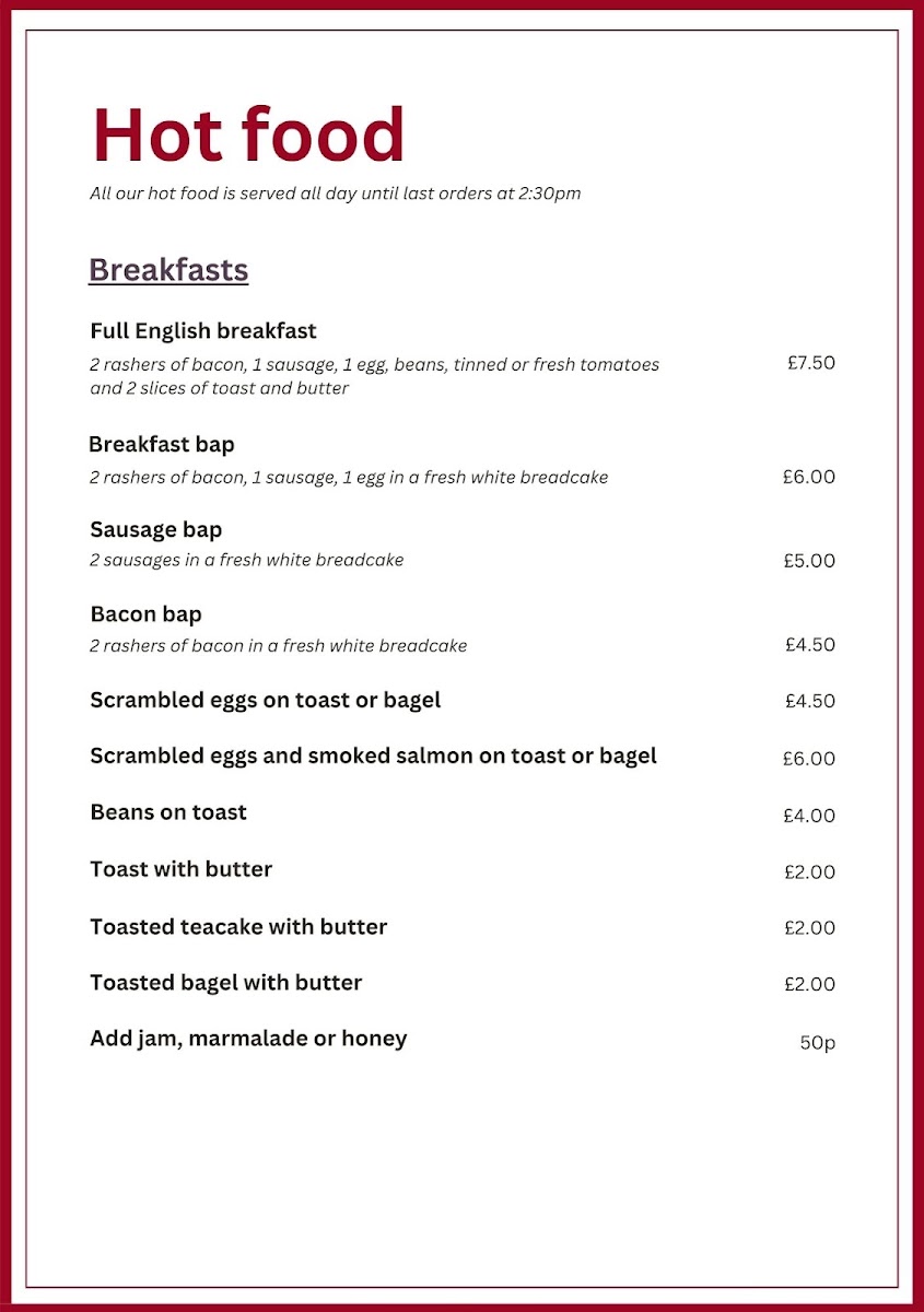 - Coffee: Enjoy a freshly brewed Americano or indulge in creamy lattes, all starting at just £2.50.